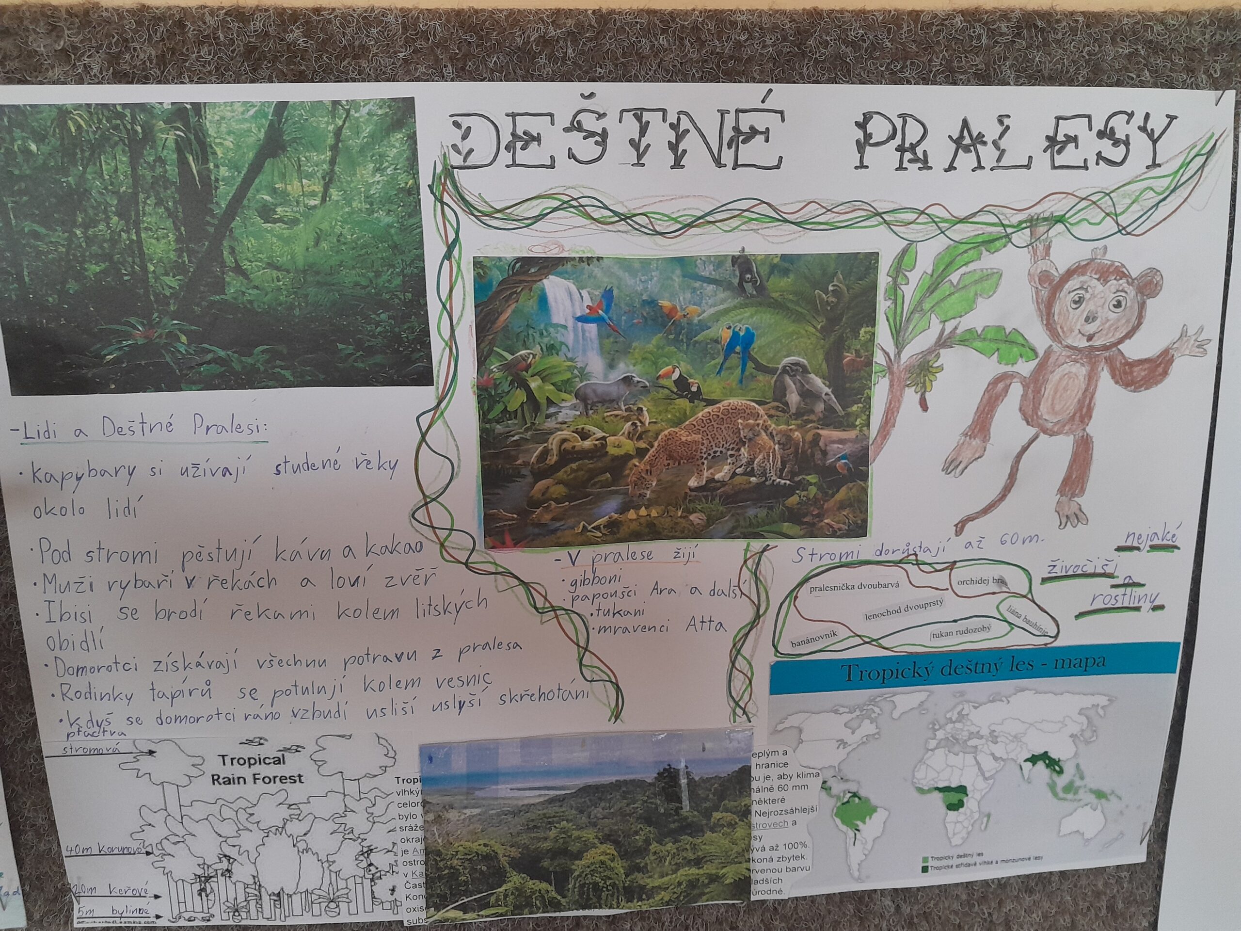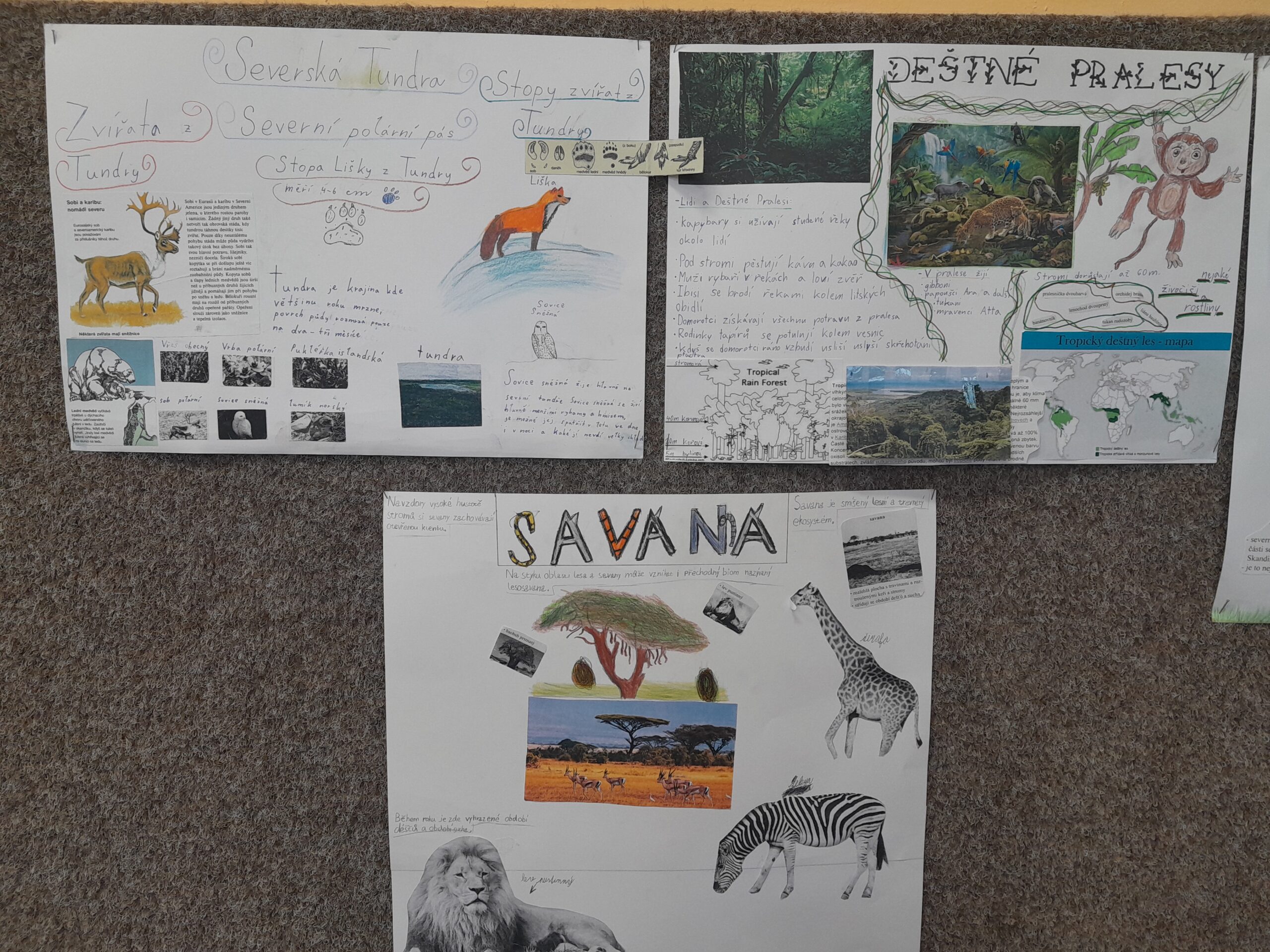 Páťáci probírali v přírodovědě podnebné pásy. Samostatně, ve dvojicích či skupinách vytvořili na toto téma nádherné projekty. Někdo se zabýval tropickými deštnými pralesy, další zpracovali informace o pouštích, také jsme se věnovali savaně, tundře, tajze a polární pustině. Děti si k danému tématu nejprve vyhledaly informace a sehnaly obrázky, ve škole pak projekty zpracovaly, na závěr je představily ostatním spolužákům.