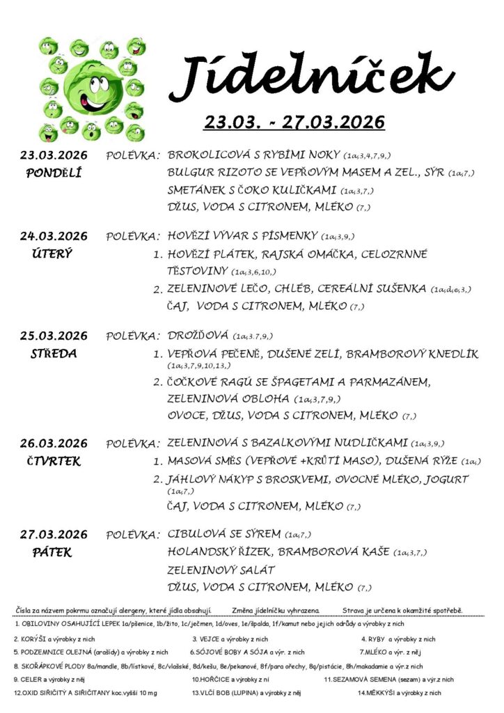 Upozorňujeme strávníky, že se od pondělí 9.března 2026 platí stravné na březen.